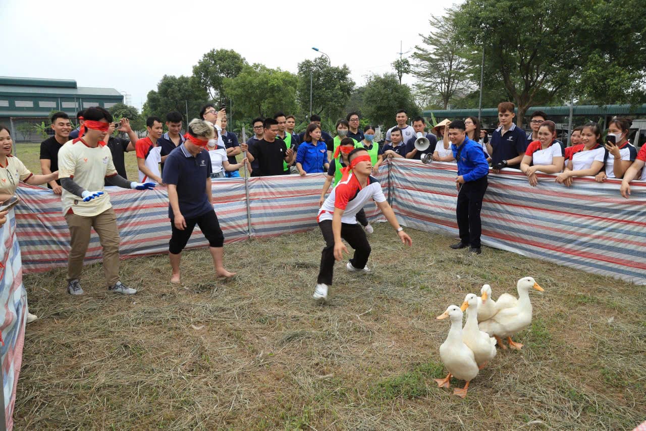 Không khí hào hứng tại trò chơi dân gian bịt mắt bắt vịt.